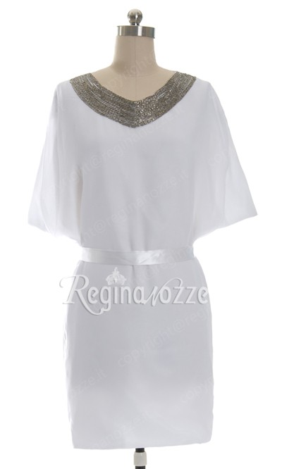 Bellissimo vestito bianco con dettagli in vita e nella scollatura.